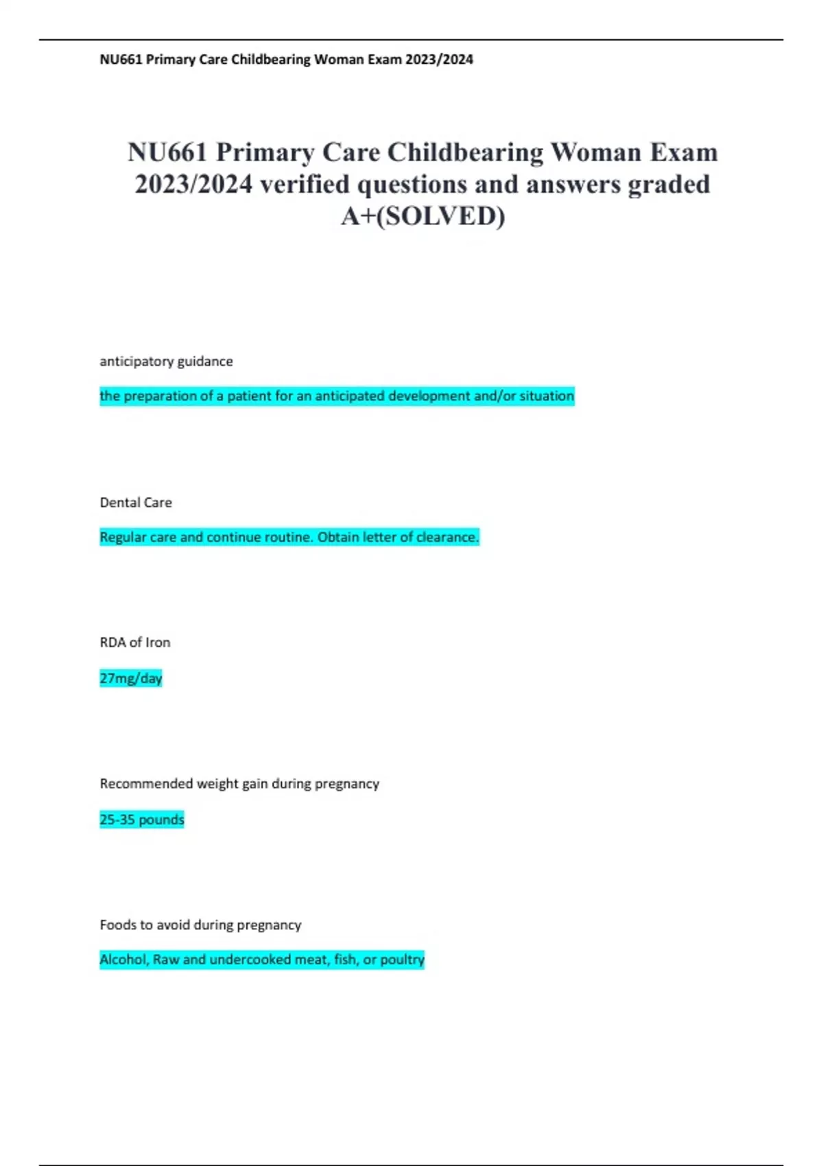 , NU661 Primary Care Childbearing Woman Exam 2023/2024
