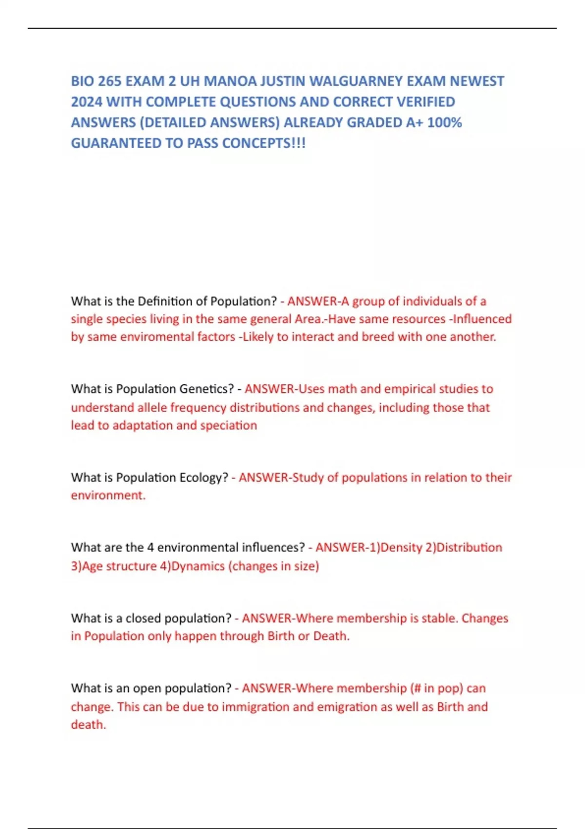 BIO 265 EXAM 2 UH MANOA JUSTIN WALGUARNEY EXAM NEWEST 2024 WITH COMPLETE QUESTIONS AND CORRECT VERIFIED ANSWERS (DETAILED ANSWERS) ALREADY GRADED A+ 100% GUARANTEED TO PASS CONCEPTS!!!