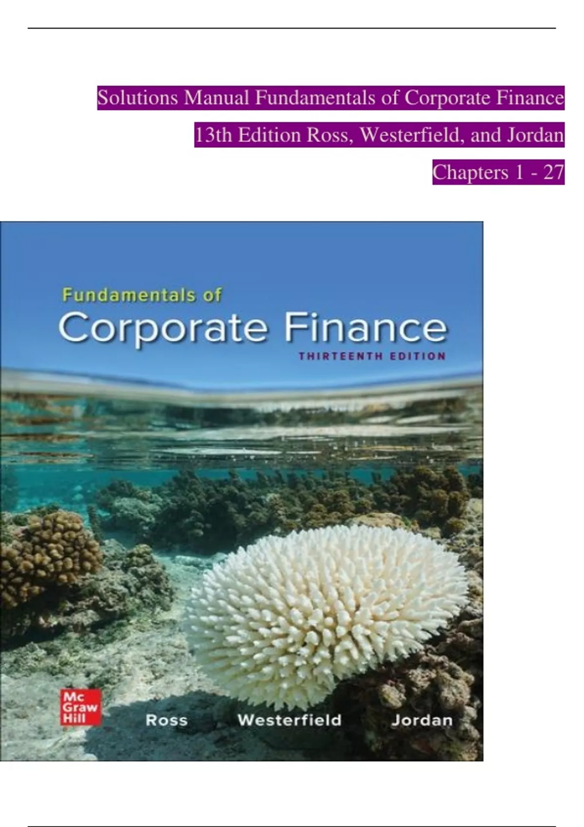 TEST BANK For Fundamentals of Corporate Finance, 13th Edition by Ross, Westerfield, Verified Chapters 1 - 27, Complete Newest Version