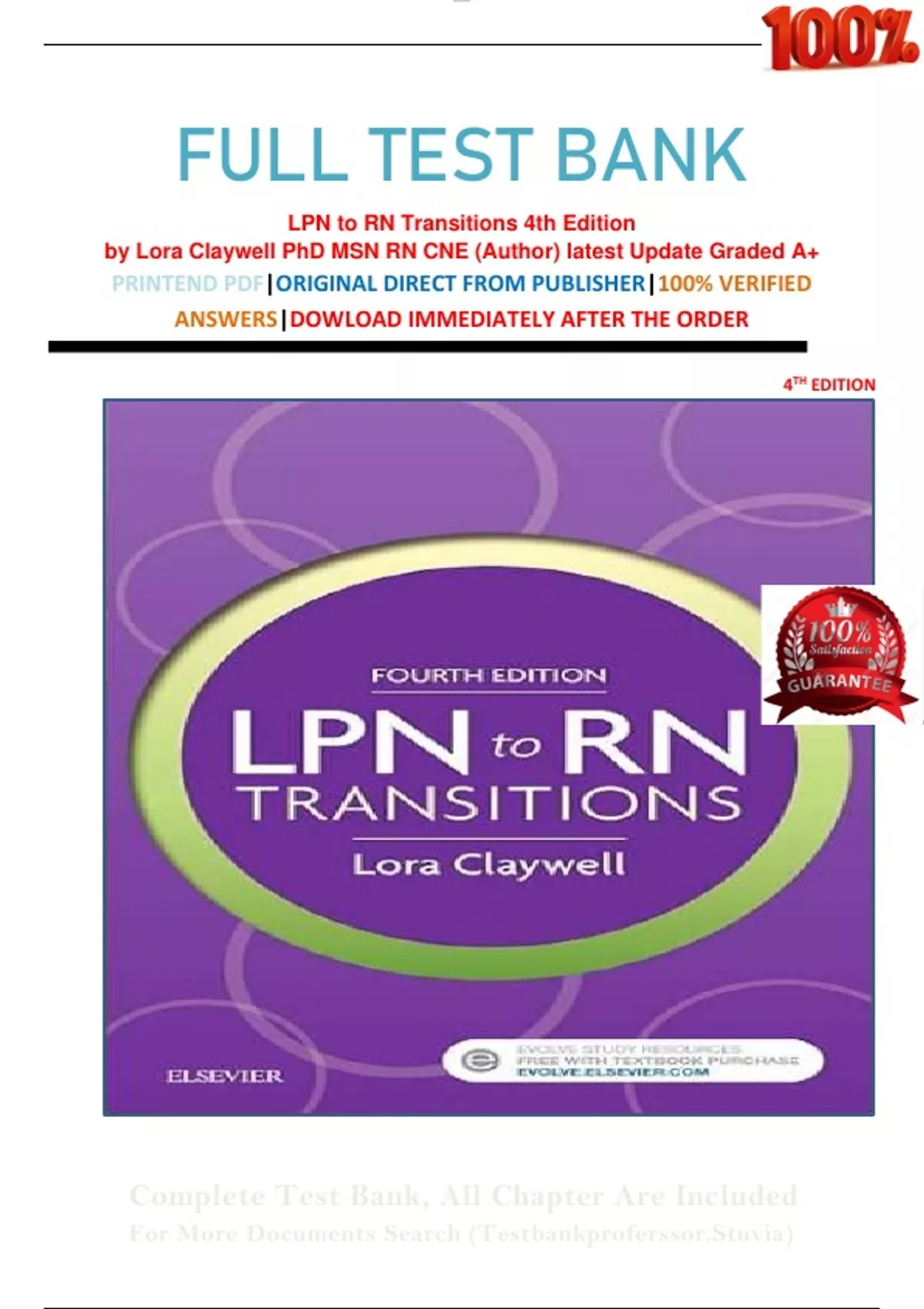 FULL TEST BANK LPN to RN Transitions 4th Edition by Lora Claywell PhD MSN RN CNE (Author) latest Update Graded A+