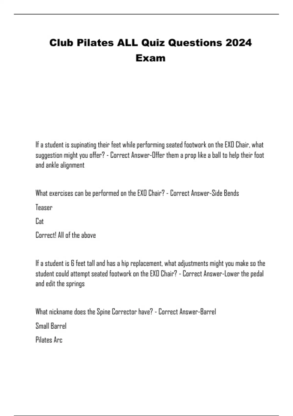 Club Pilates ALL Quiz Questions 2024