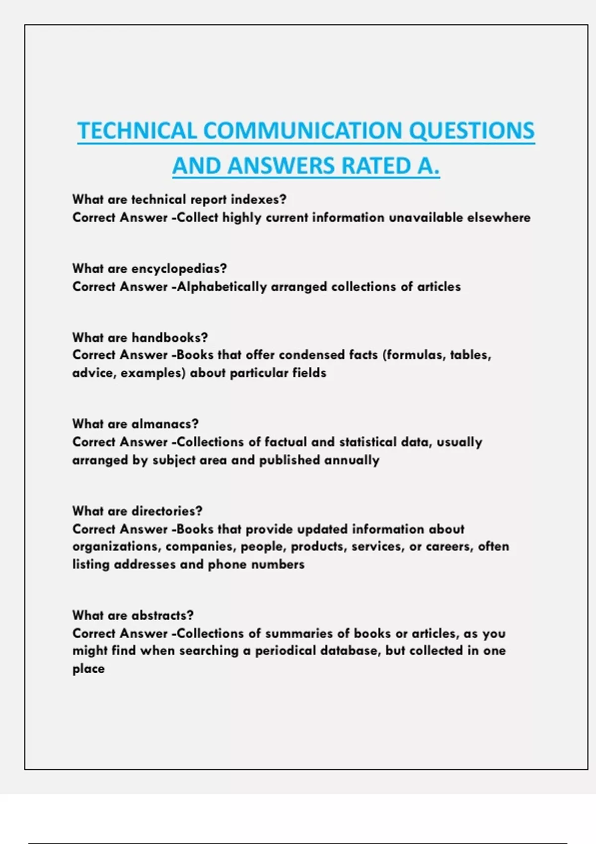 Correct Answer -Books that offer condensed facts (formulas, tables,