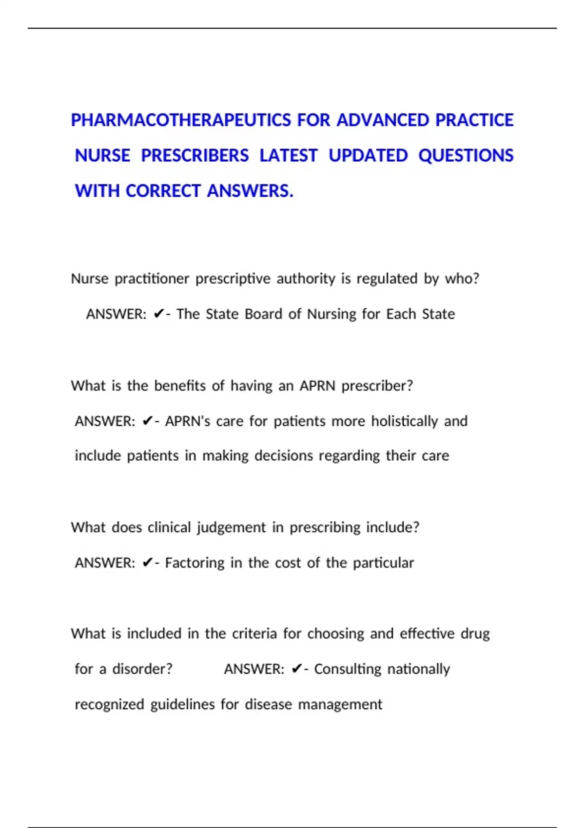 e NURSE PRESCRIBERS LATEST UPDATED QUESTIONS