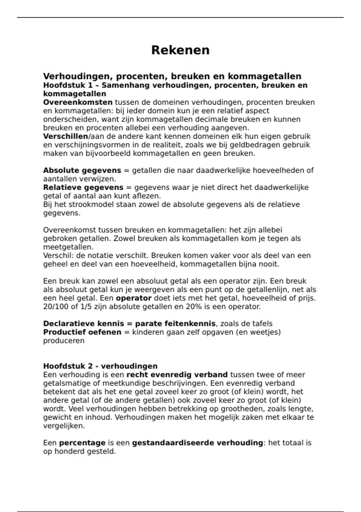Hoofdstuk 1 – Samenhang verhoudingen, procenten, breuken en