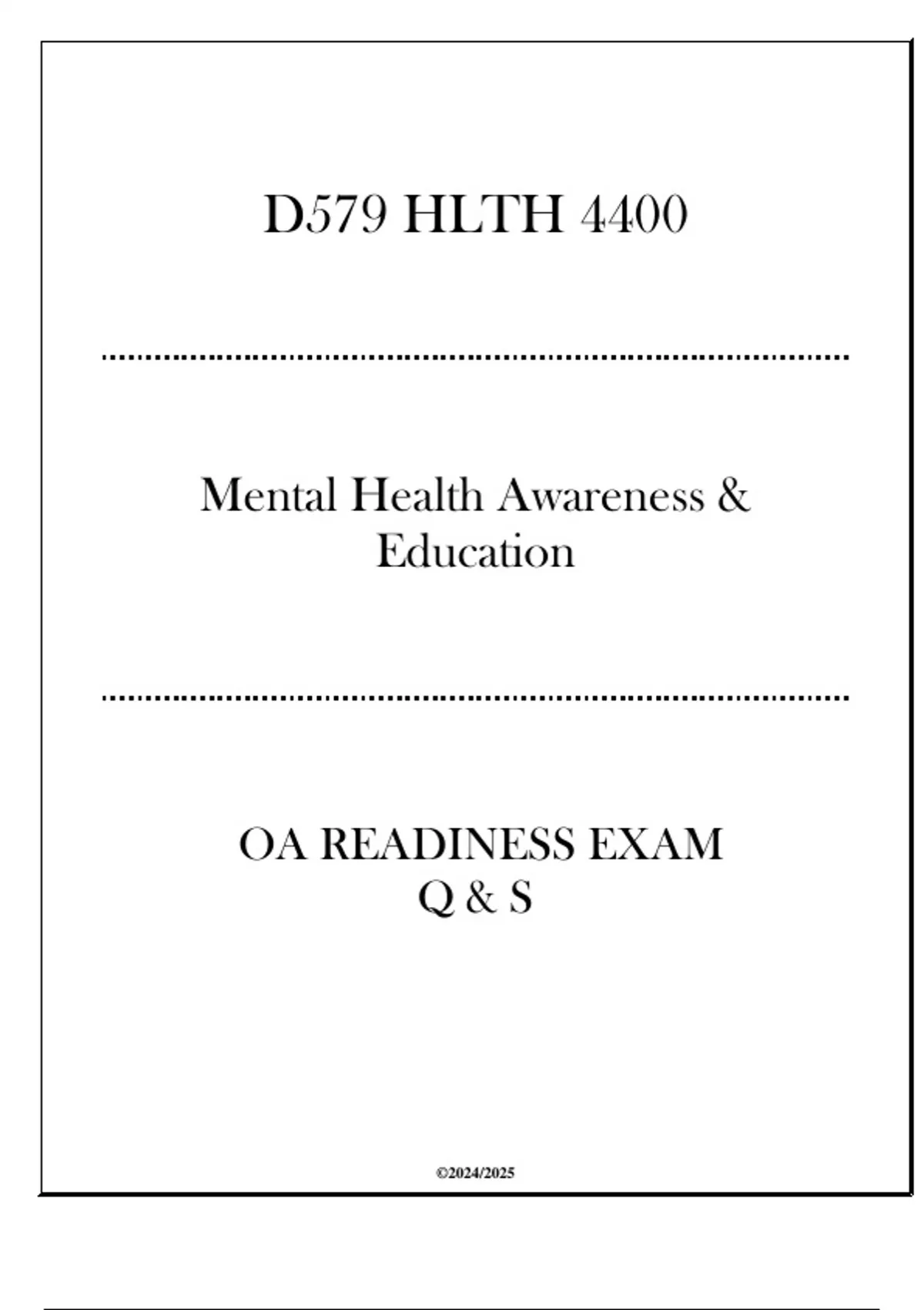 (D579) HLTH 4400 OA Readiness Exam 2024 (Mental Health Awareness & Education)