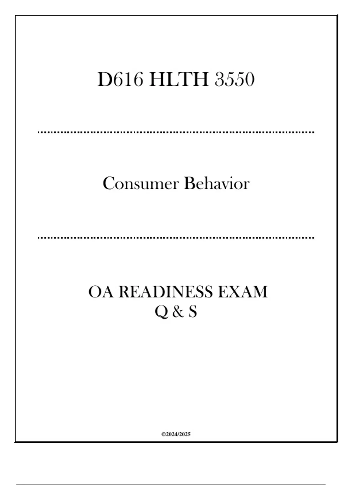 (D616) HLTH 3550 OA(D616) HLTH 3550 OA Readiness Exam 2024 (Consumer Behavior).(D616) HLTH 3550 OA Readiness Exam 2024 (Consumer Behavior).(D616) HLTH 3550 OA Readiness Exam 2024 (Consumer Behavior).eadiness Exam 2024 (Consumer Behavior).