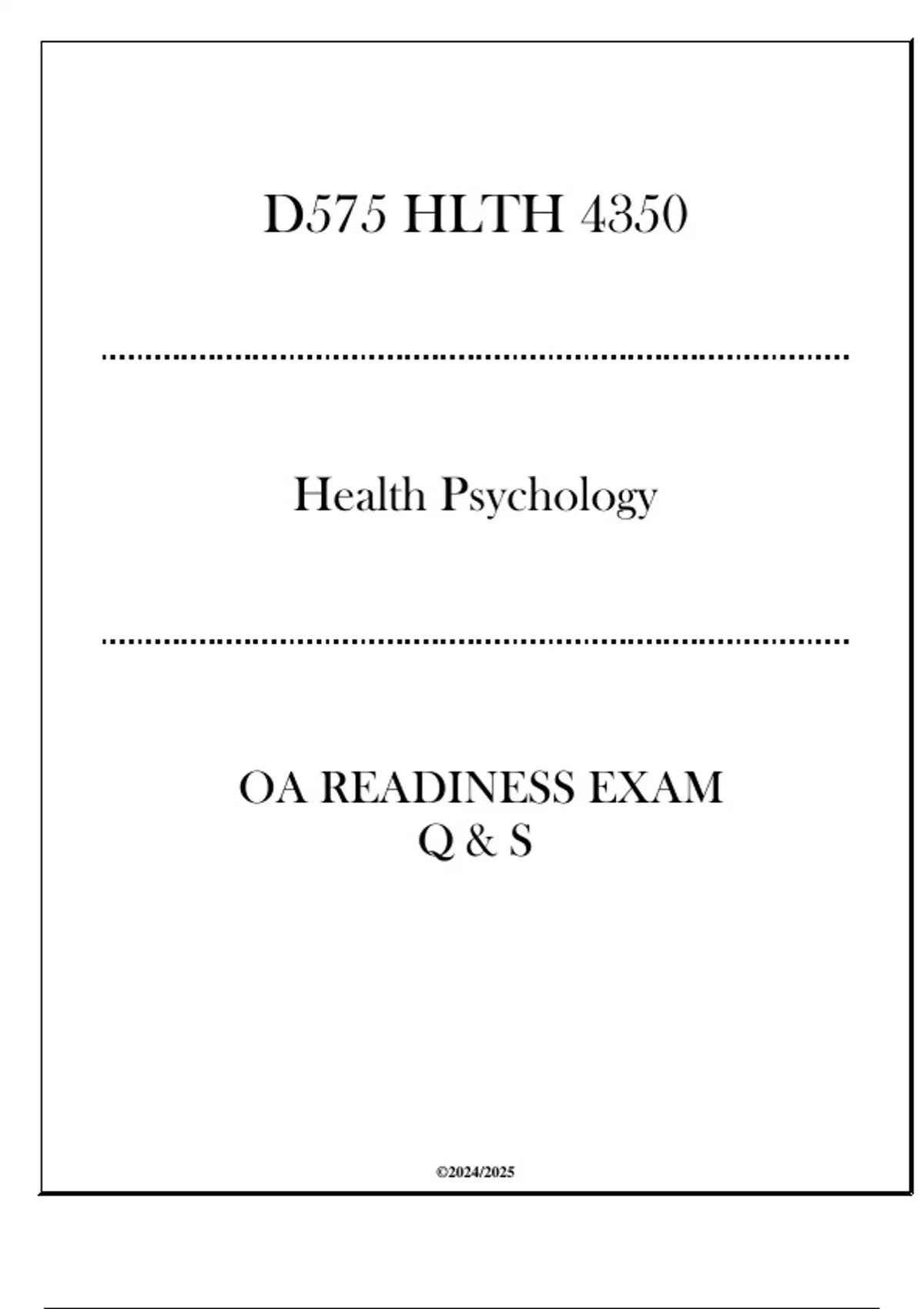 (D575) HLTH 4350 OA Readiness Exam 2024 (Health Psychology(D575) HLTH 4350 OA Readiness Exam 2024 (Health Psychology(D575) HLTH 4350 OA Readiness Exam 2024 (Health Psychology
