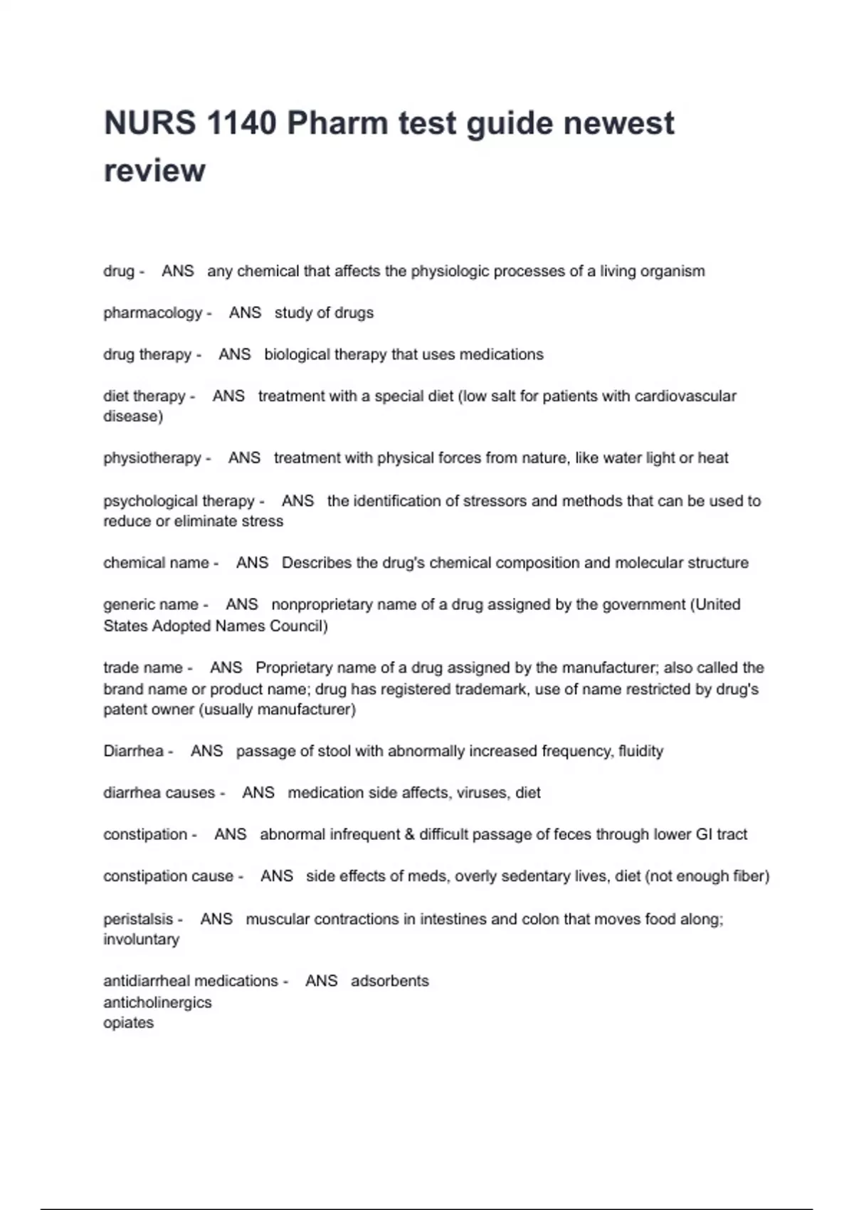 NURS 1140 Pharm test guide newest
