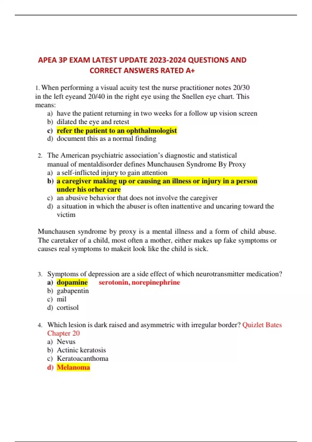 APEA 3P EXAM LATEST UPDATE 2023-2024 QUESTIONS AND