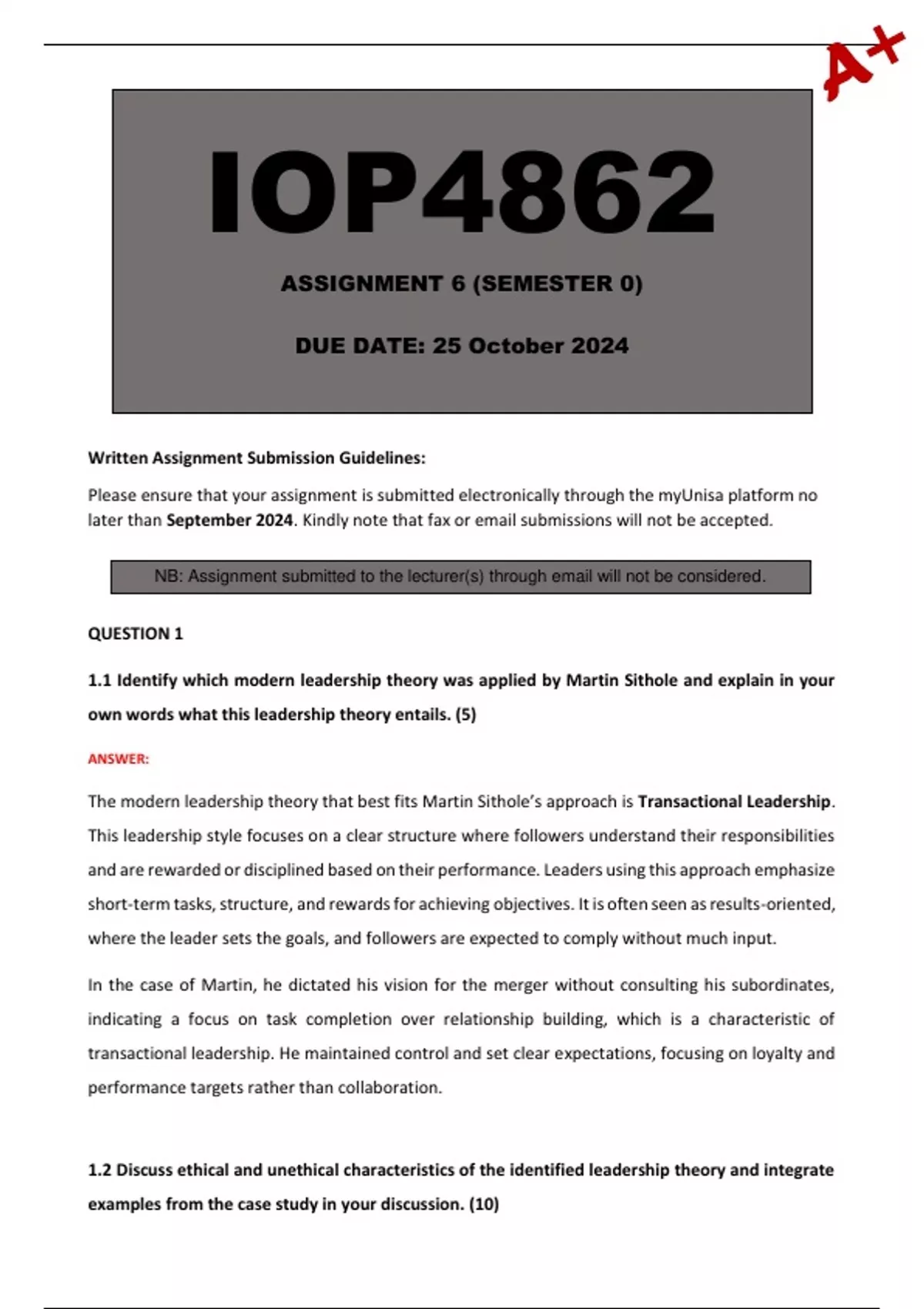 IOP4862 Assignment 6 (COMPLETE ANSWERS) 2024 (783461)- DUE 25 October 2024