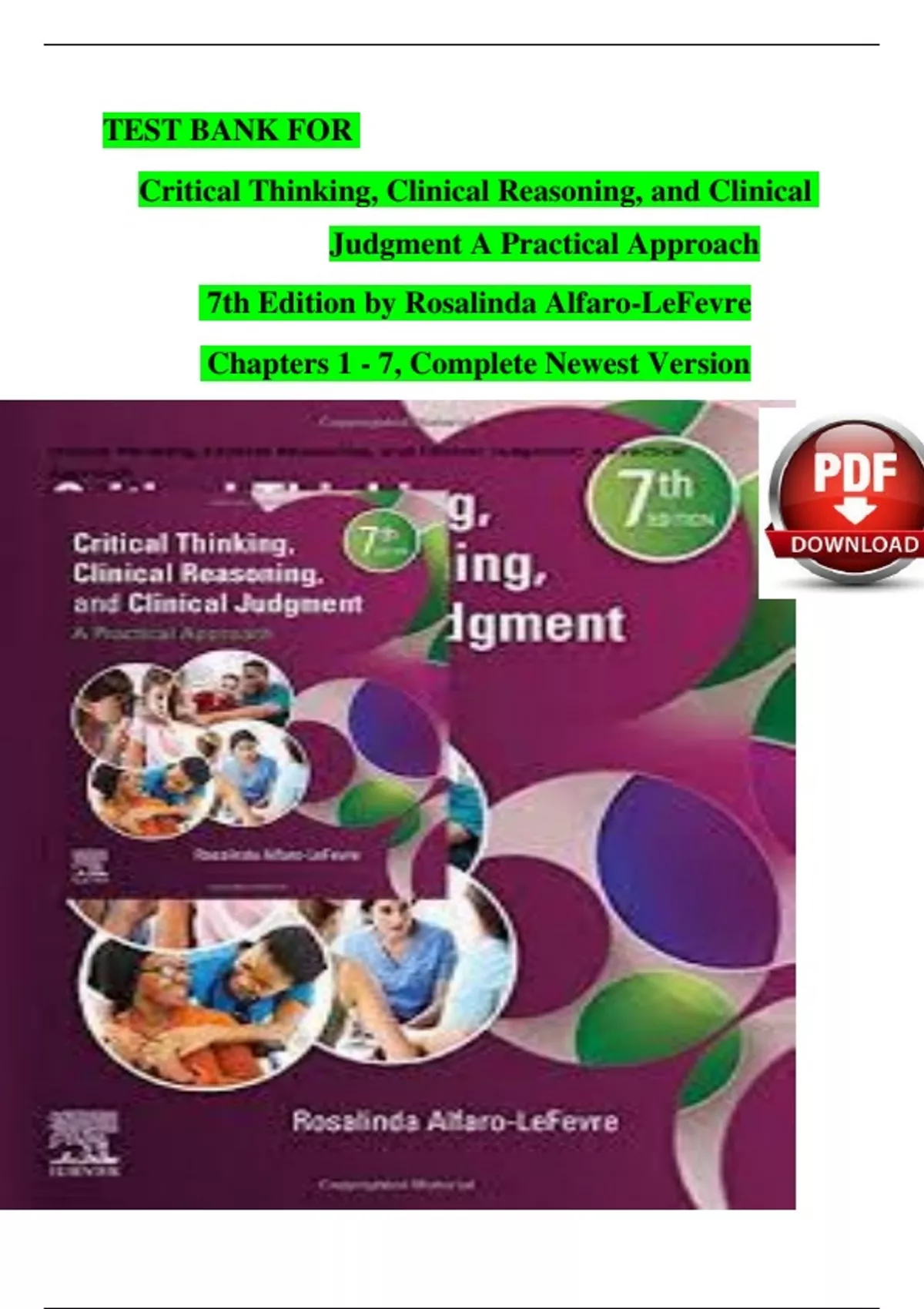 TEST BANK For Critical Thinking, Clinical Reasoning, and Clinical Judgment A Practical Approach 7th Edition by Rosalinda Alfaro-LeFevre, Verified Chapters 1 - 7, Complete New Version