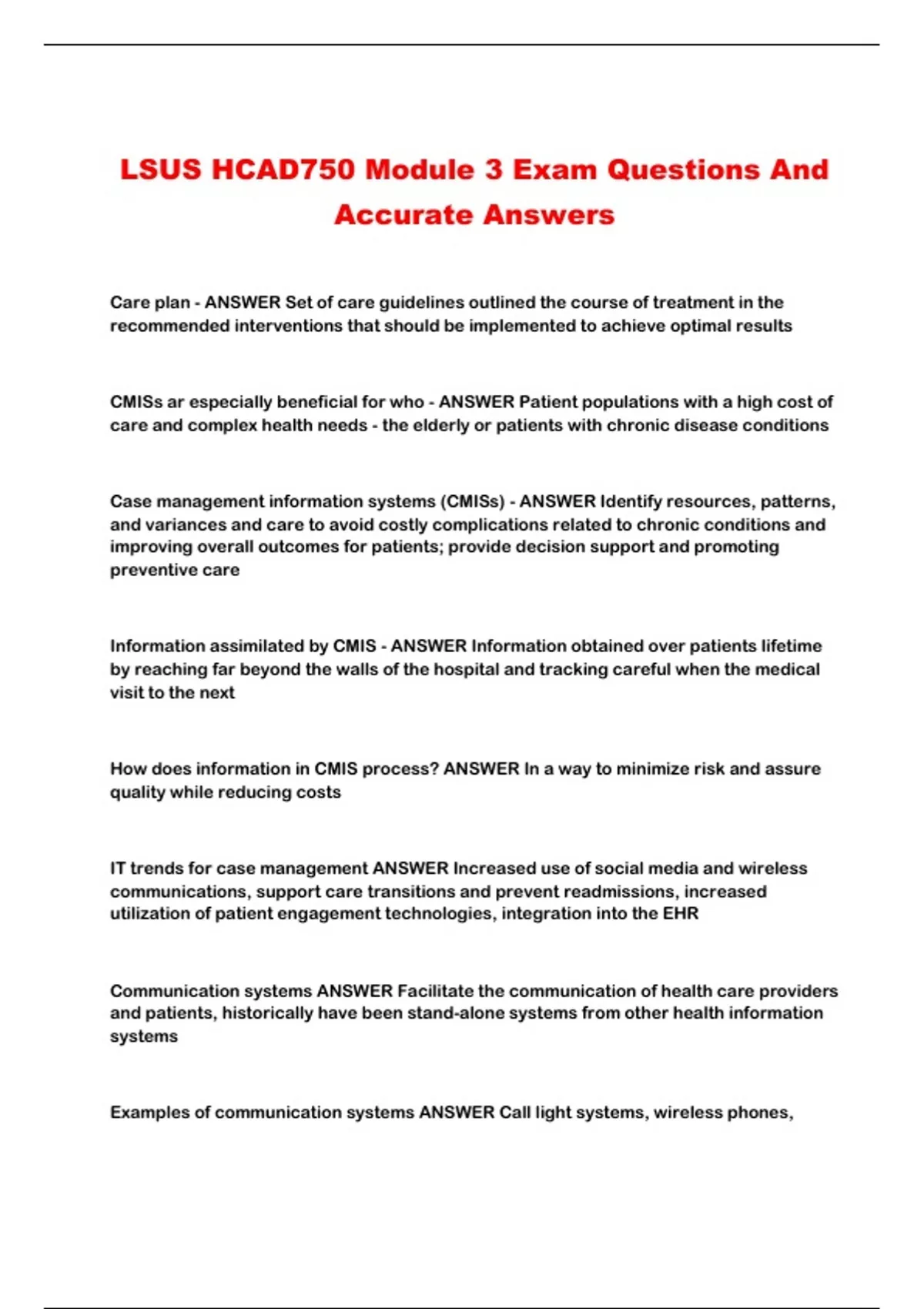 LSUS HCAD750 Module 3 Exam Questions And Accurate Answers