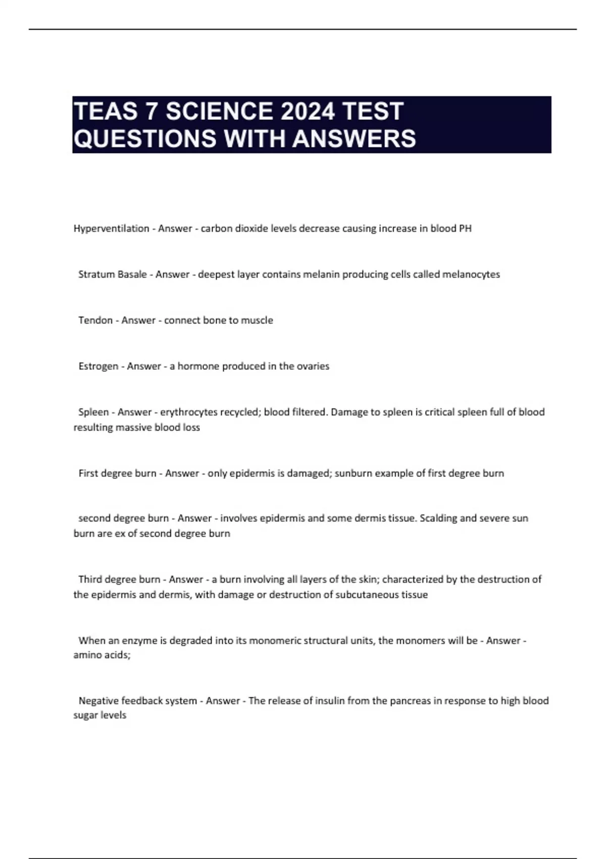 TEAS 7 SCIENCE 2024 TEST QUESTIONS WITH ANSWERS