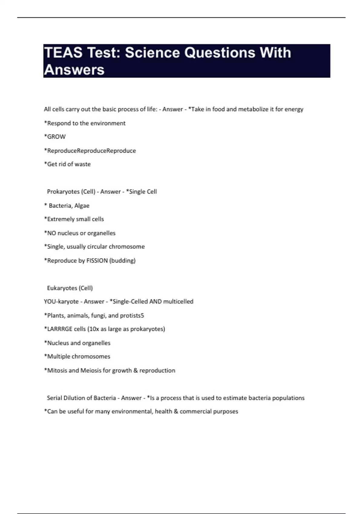 TEAS Test: Science Questions With