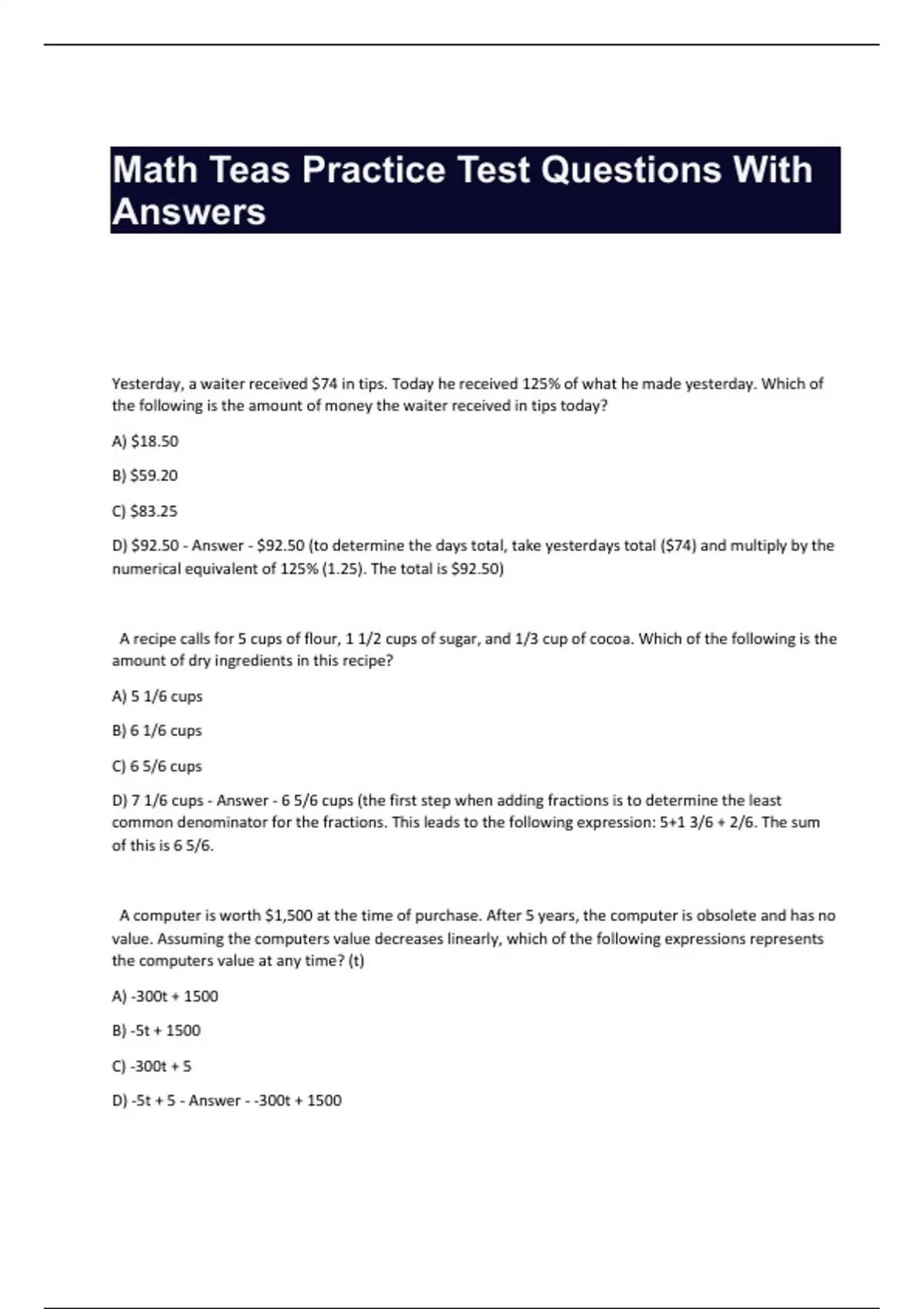 Yesterday, a waiter received $74 in tips. Today he received 125% of what he made yesterday. Which of