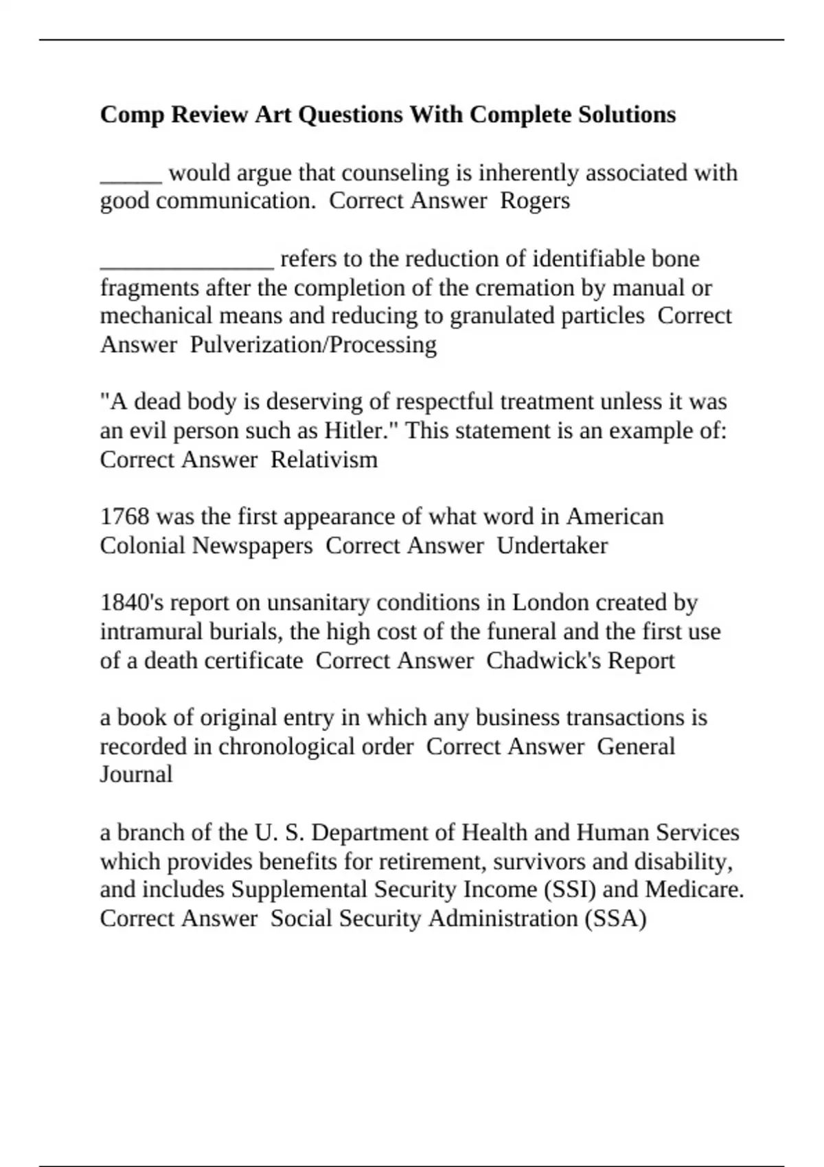 Correct Answer Social Security Administration (SSA)
