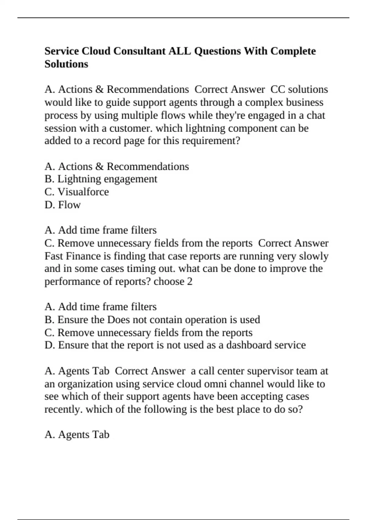Service Cloud Consultant ALL Questions With Complete