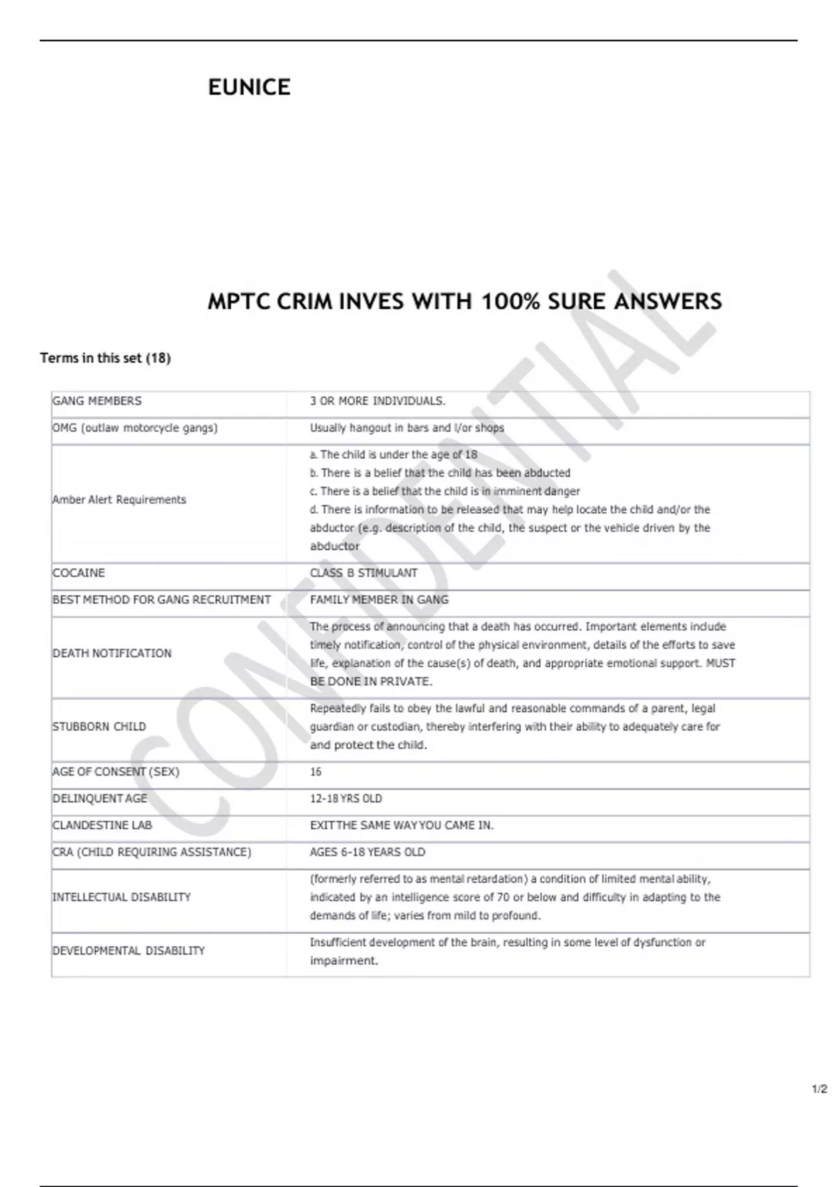 MPTC CRIM INVES WITH 100- COMPLETE ANSWERS.