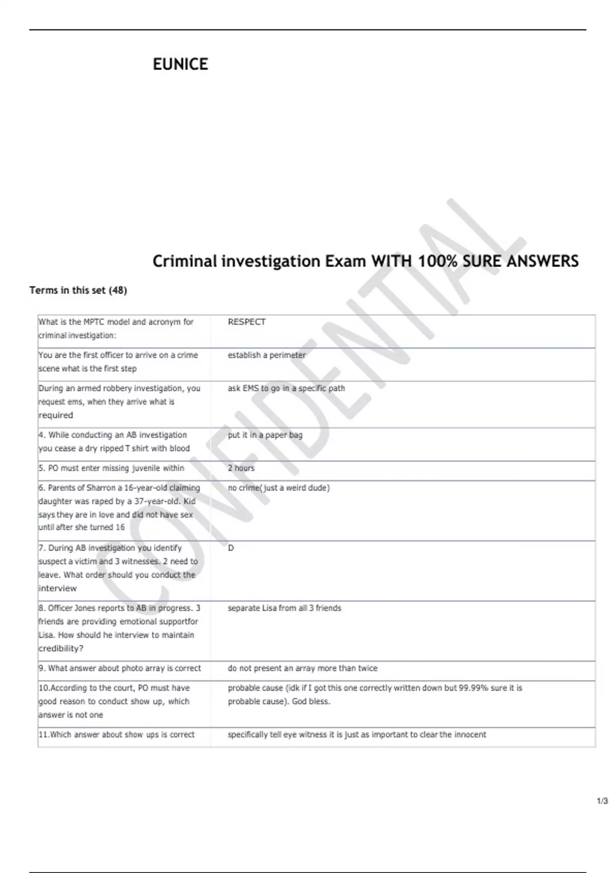 Criminal investigation Exam WITH 100- SURE ANSWERS