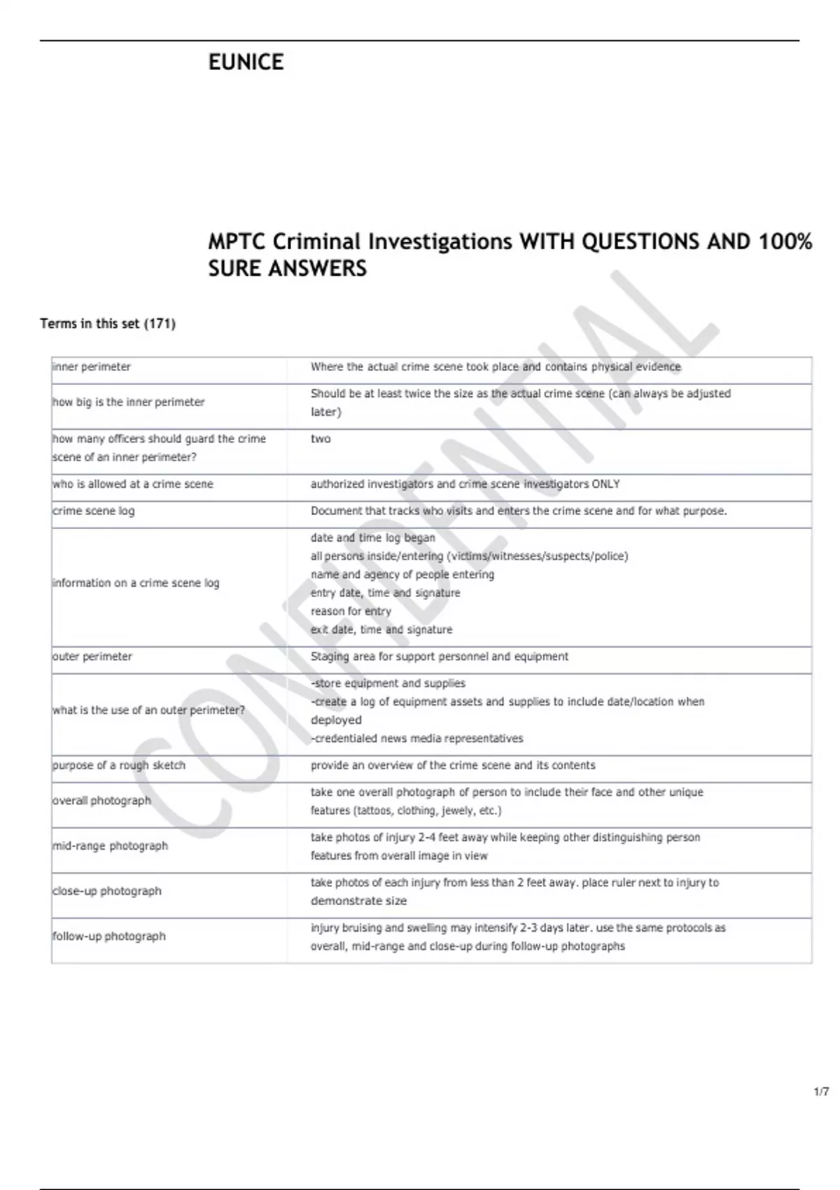 MPTC Criminal Investigations WITH QUESTIONS AND 100%
