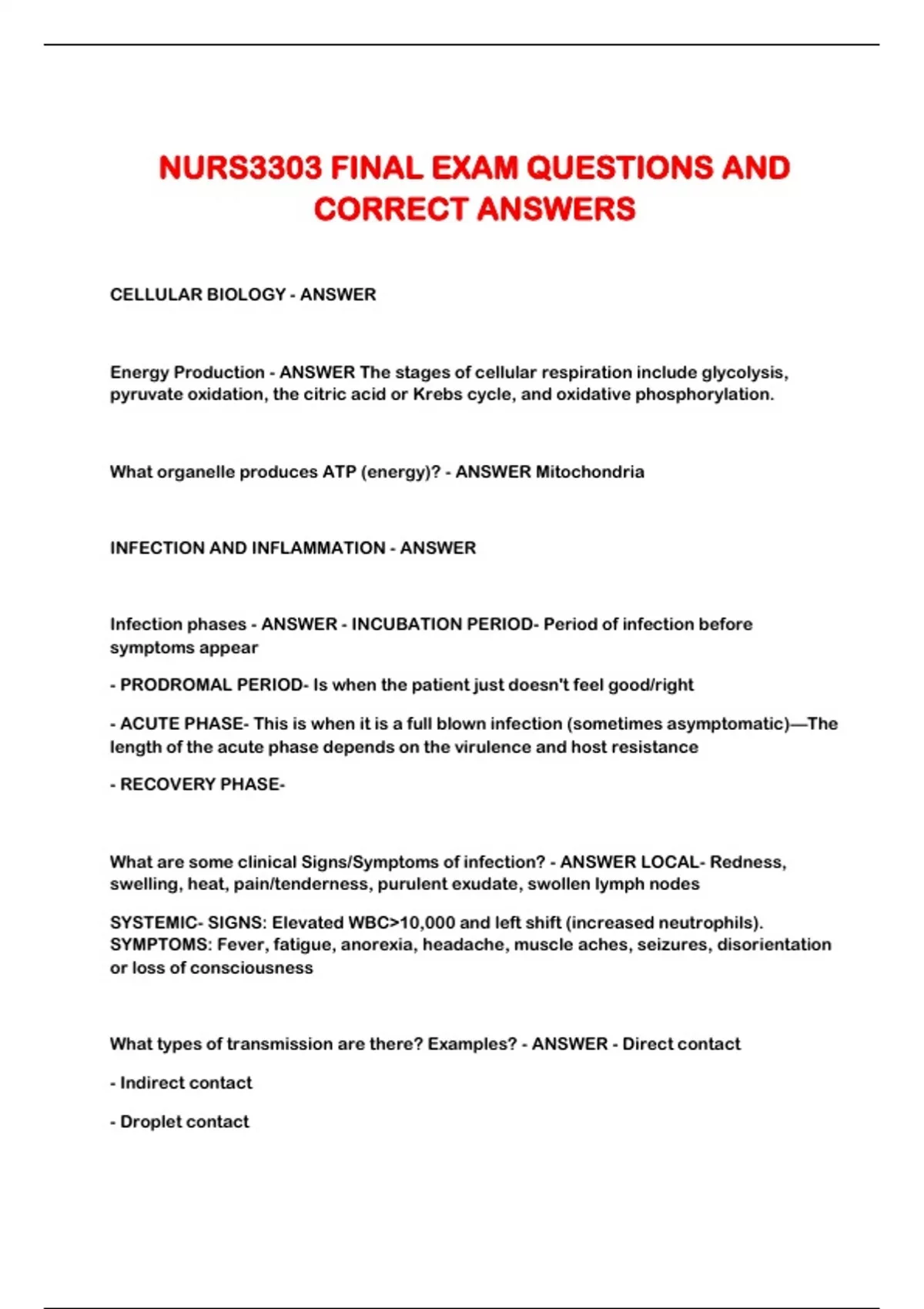NURS3303 FINAL EXAM QUESTIONS AND CORRECT ANSWERS