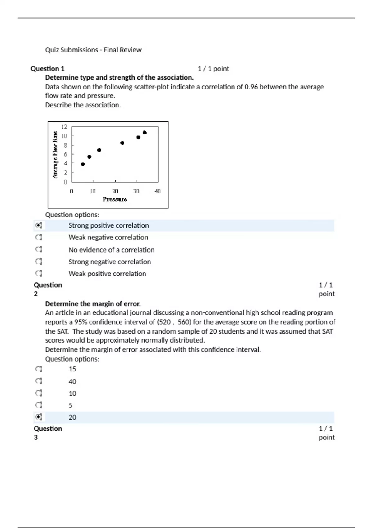 the SAT. The study was based on a random sample of 20 students and it was assumed that SAT