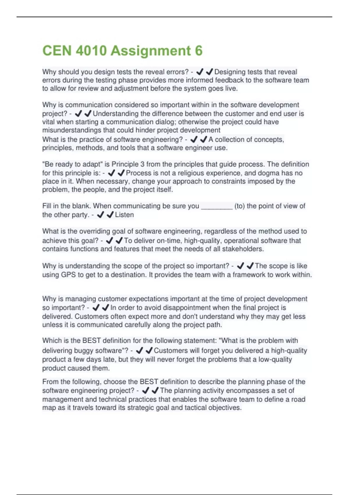 CEN 4010 Assignment 6 Questions And Answers Rated 100% Correct