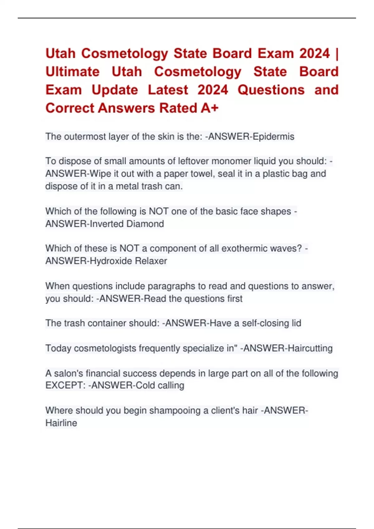 Utah Cosmetology State Board Exam 2024 |