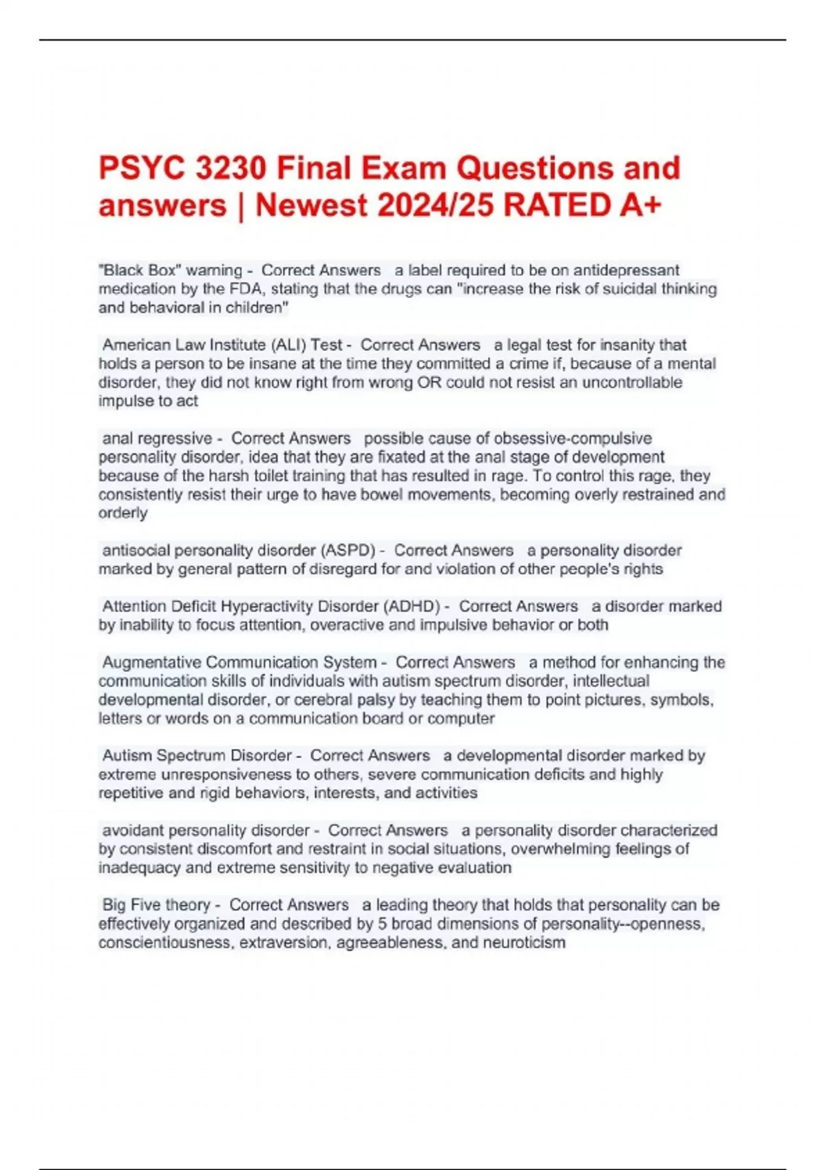 PSYC 3230 Final Exam Questions and answers | Newest 2024/25 RATED A+