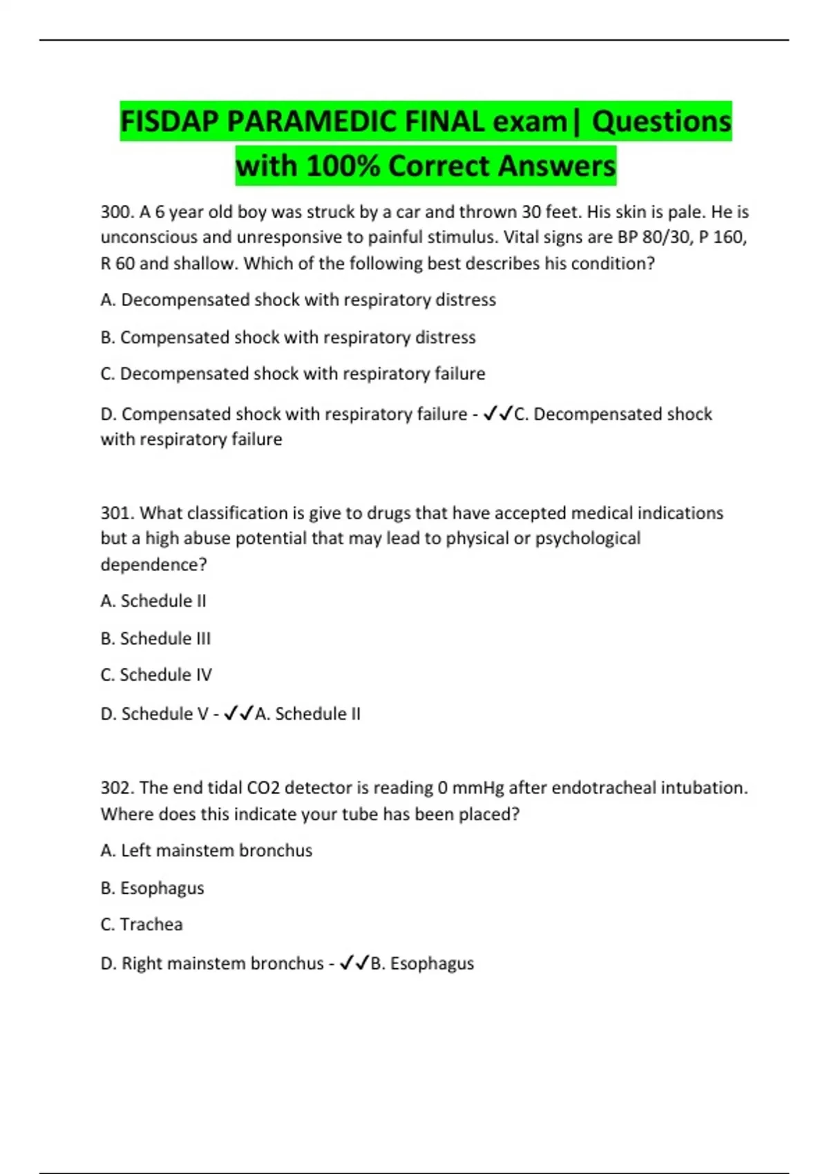 FISDAP PARAMEDIC FINAL exam| Questions with 100% Correct Answers