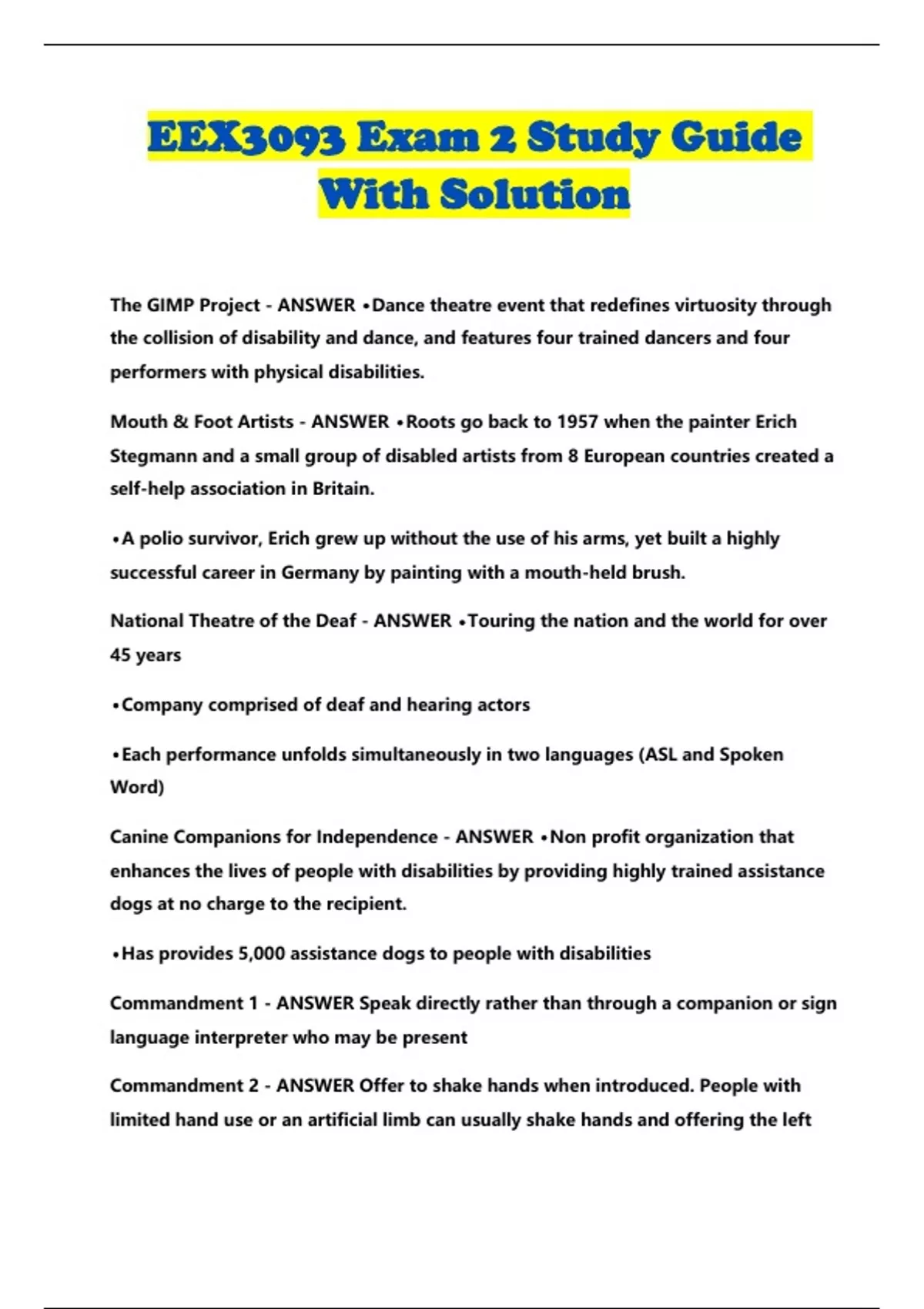 EEX3093 Exam 2 Study Guide With Solution...