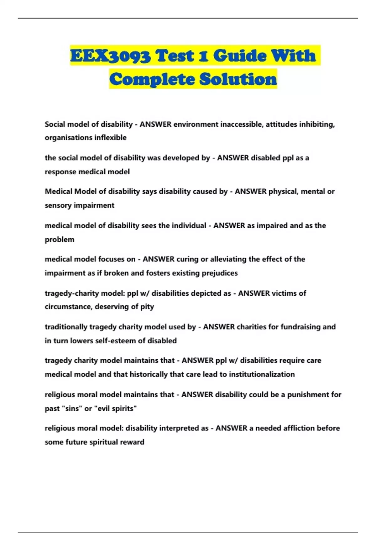 Medical Model of disability says disability caused by - ANSWER physical, mental or