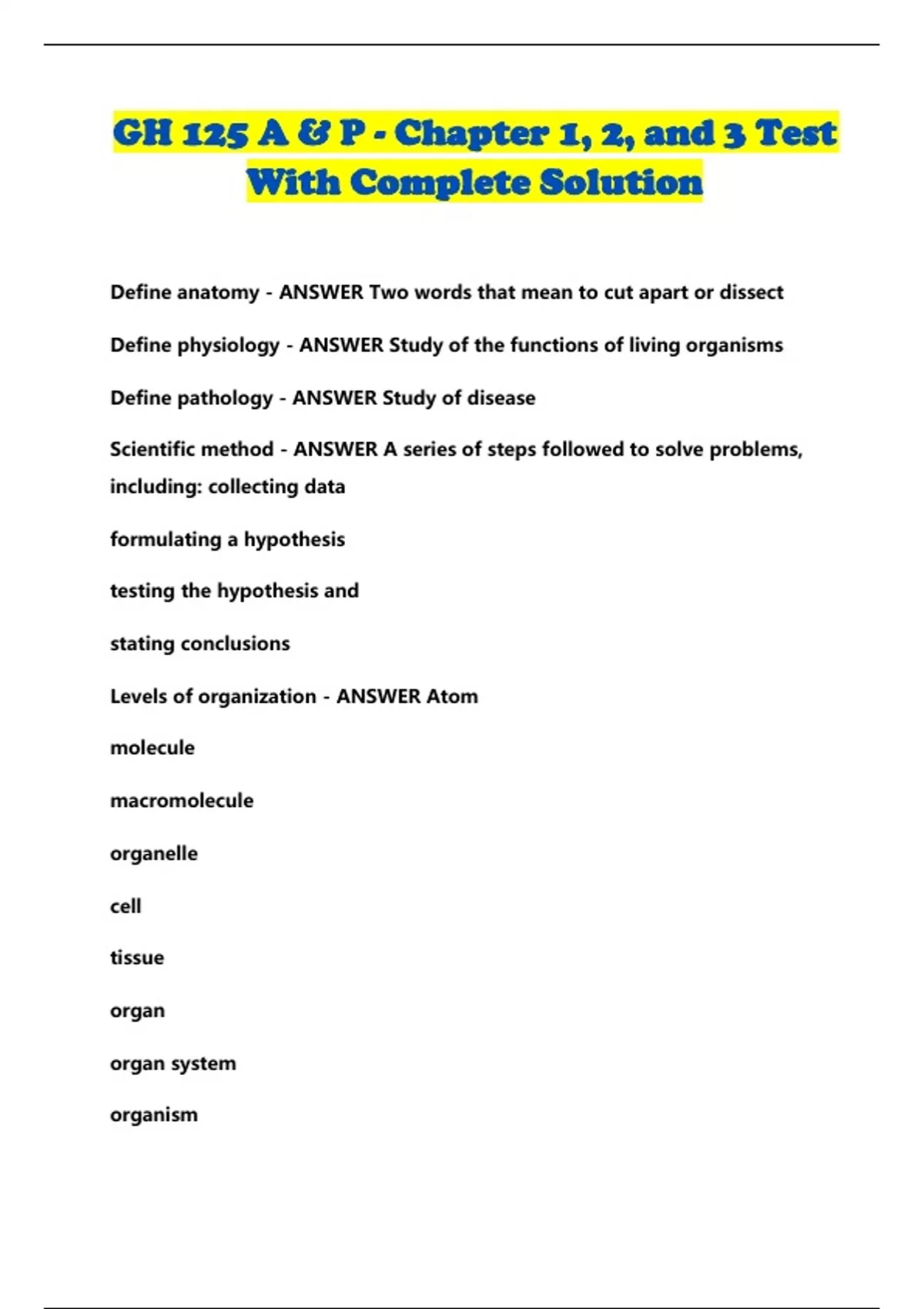 GH 125 A & P - Chapter 1, 2, and 3 Test With Complete Solution...
