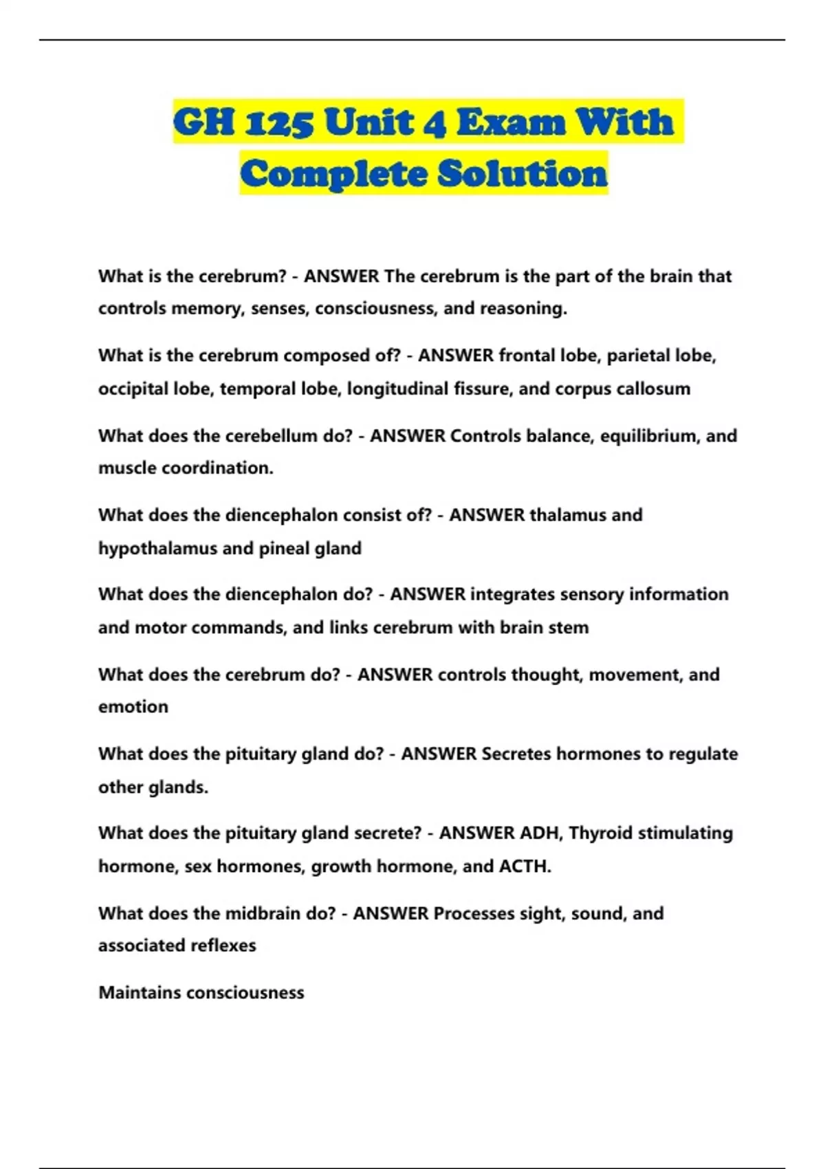 What is the cerebrum? - ANSWER The cerebrum is the part of the brain that