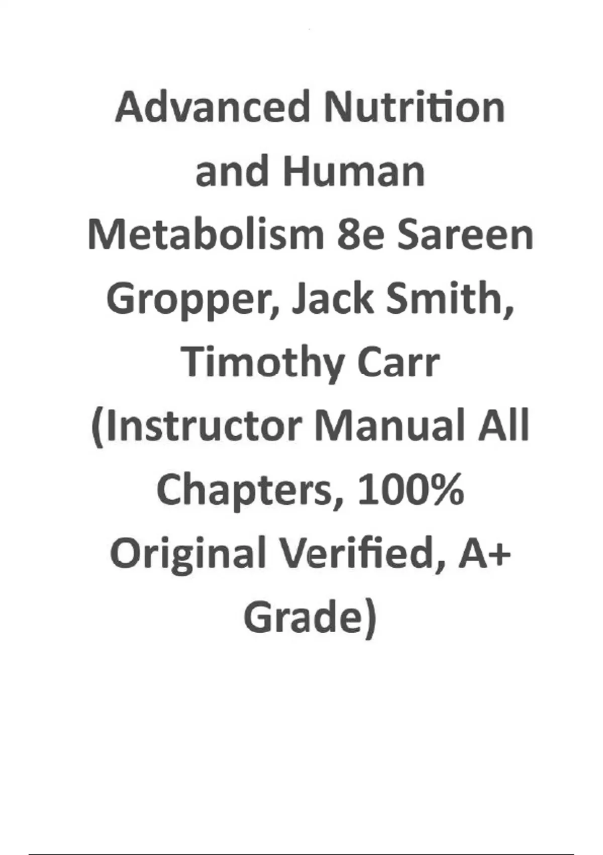 Advanced Nutrition and Human Metabolism | 8th Edition Sareen S. Gropper/Jack L. Smith/Timothy P. Carr