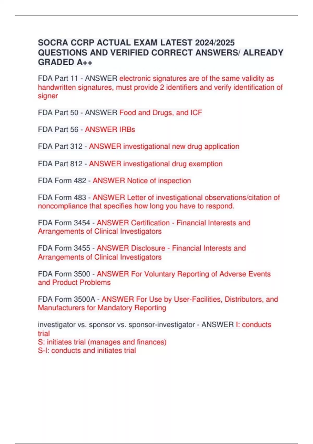 SOCRA CCRP ACTUAL EXAM LATEST 2024/2025
