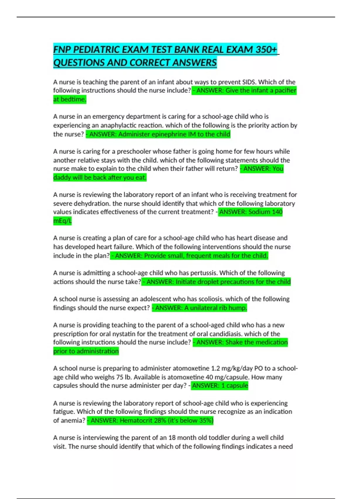 FNP PEDIATRIC EXAM TEST BANK REAL EXAM 350+