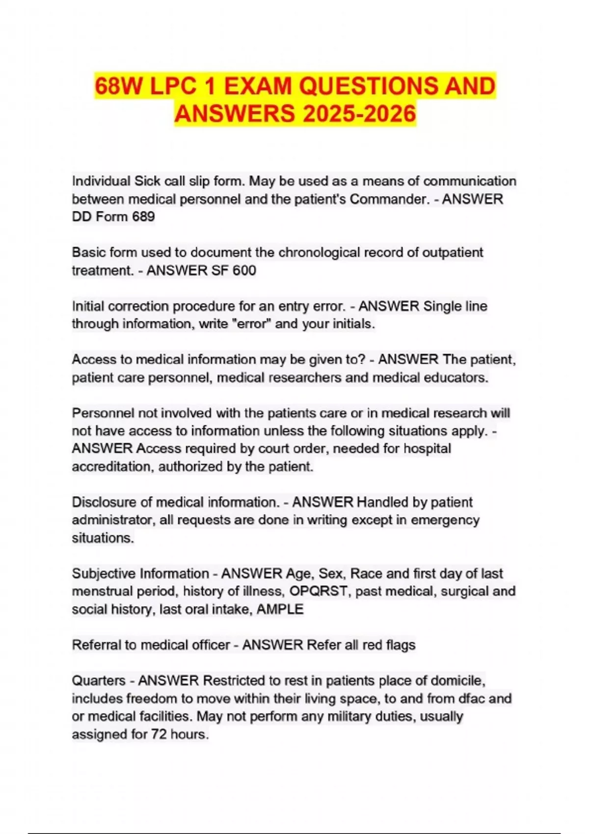 68W LPC 1 EXAM QUESTIONS AND ANSWERS ...