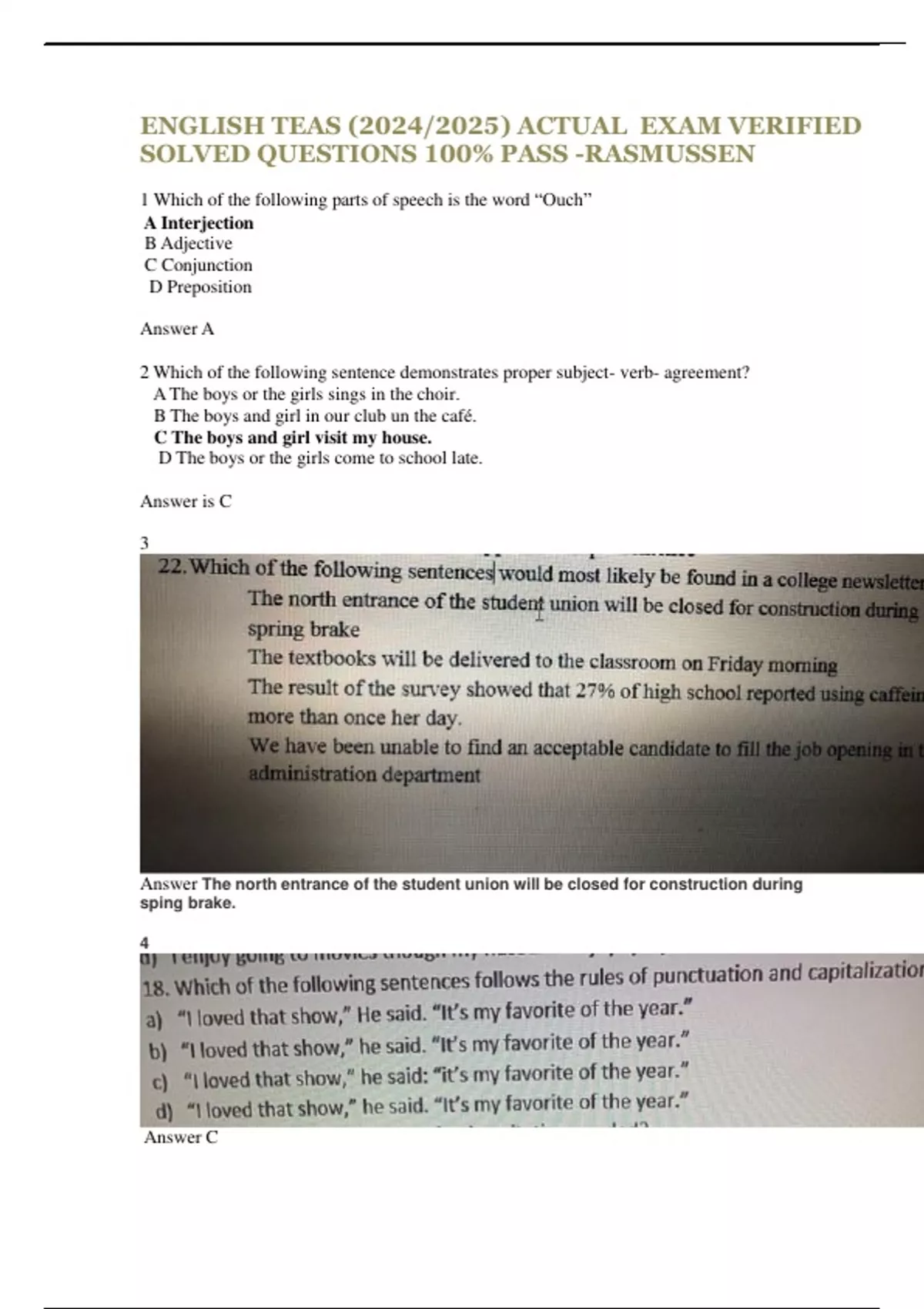 ENGLISH TEAS (2024/2025) ACTUAL EXAM VERIFIED