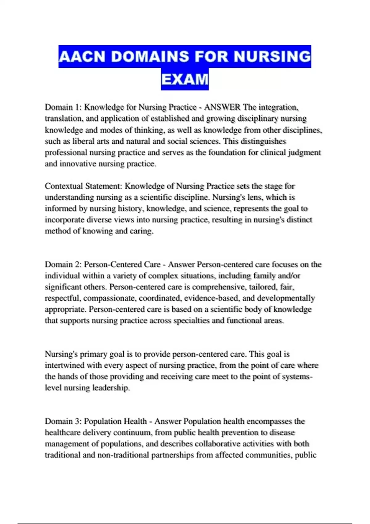 Domain 3: Population Health - Answer Population health encompasses the