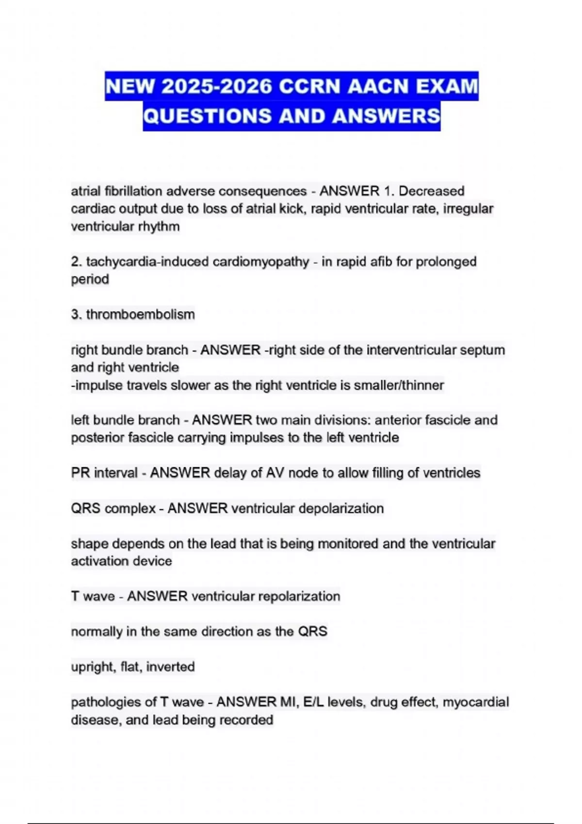 NEW CCRN AACN EXAM QUESTIONS AND ANSWERS...