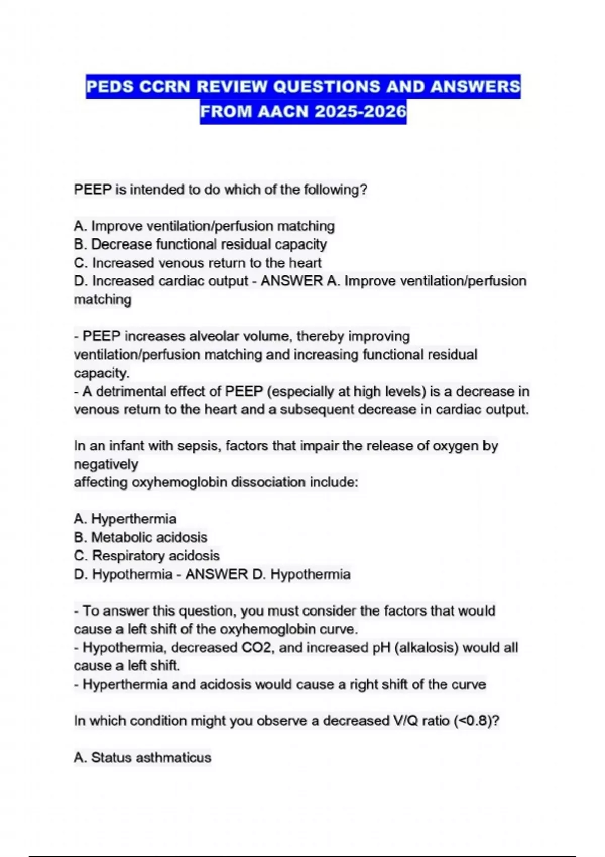 PEDS CCRN REVIEW QUESTIONS AND ANSWERS FROM AACN ...