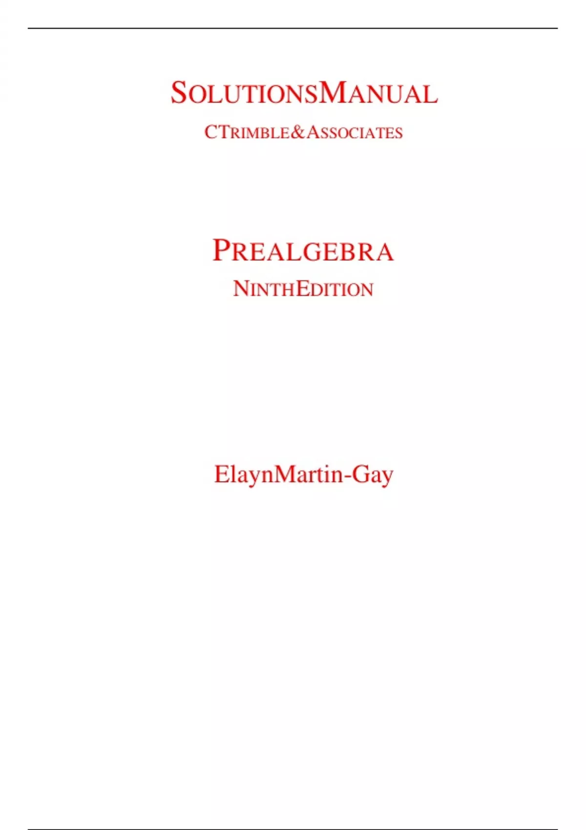 SOLUTION MANUAL FOR C TRIMBLE AND ASSOCIATES PREAL GEBRA 9TH EDITION BY ELAYNE MARTIN GAY