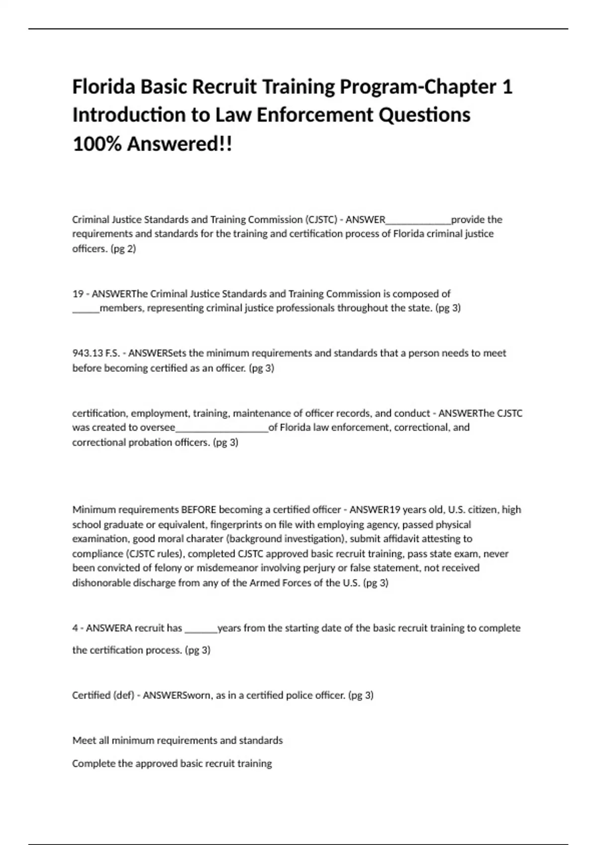 State Officer Certification Exam (SOCE) - ANSWERUpon completion of a basic recruit training
