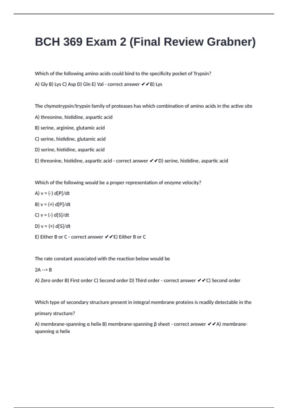 A) Gly B) Lys C) Asp D) Gln E) Val - correct answer ✔✔B) Lys