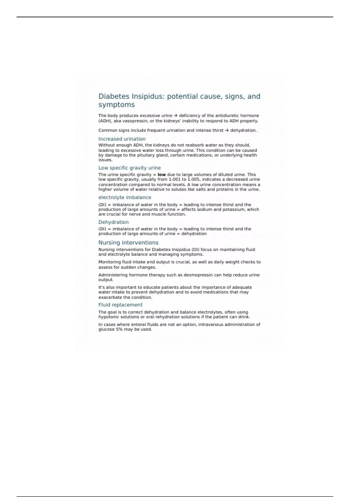 This is a comprehensive and detailed note on Diabetes Insipidus, potential cause,signs ans symptoms for NURS 101. *Essential Study Material!!