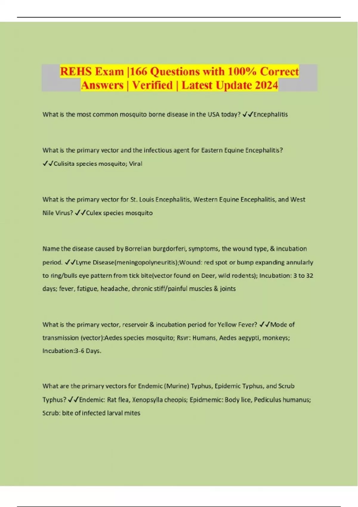 REHS Exam |166 Questions with 100% Correct Answers | Verified | Latest Update 2024