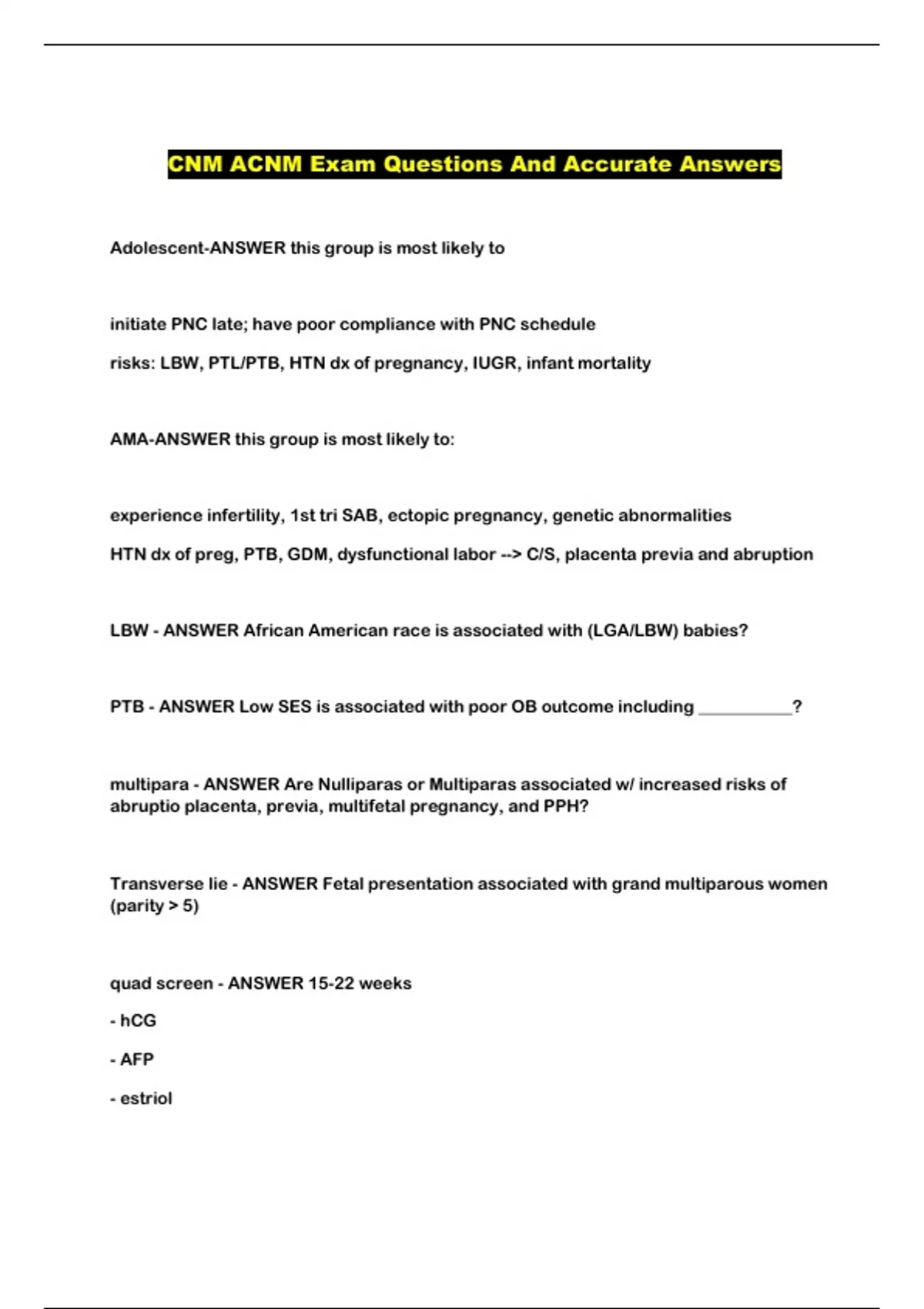 Transverse lie - ANSWER Fetal presentation associated with grand multiparous women
