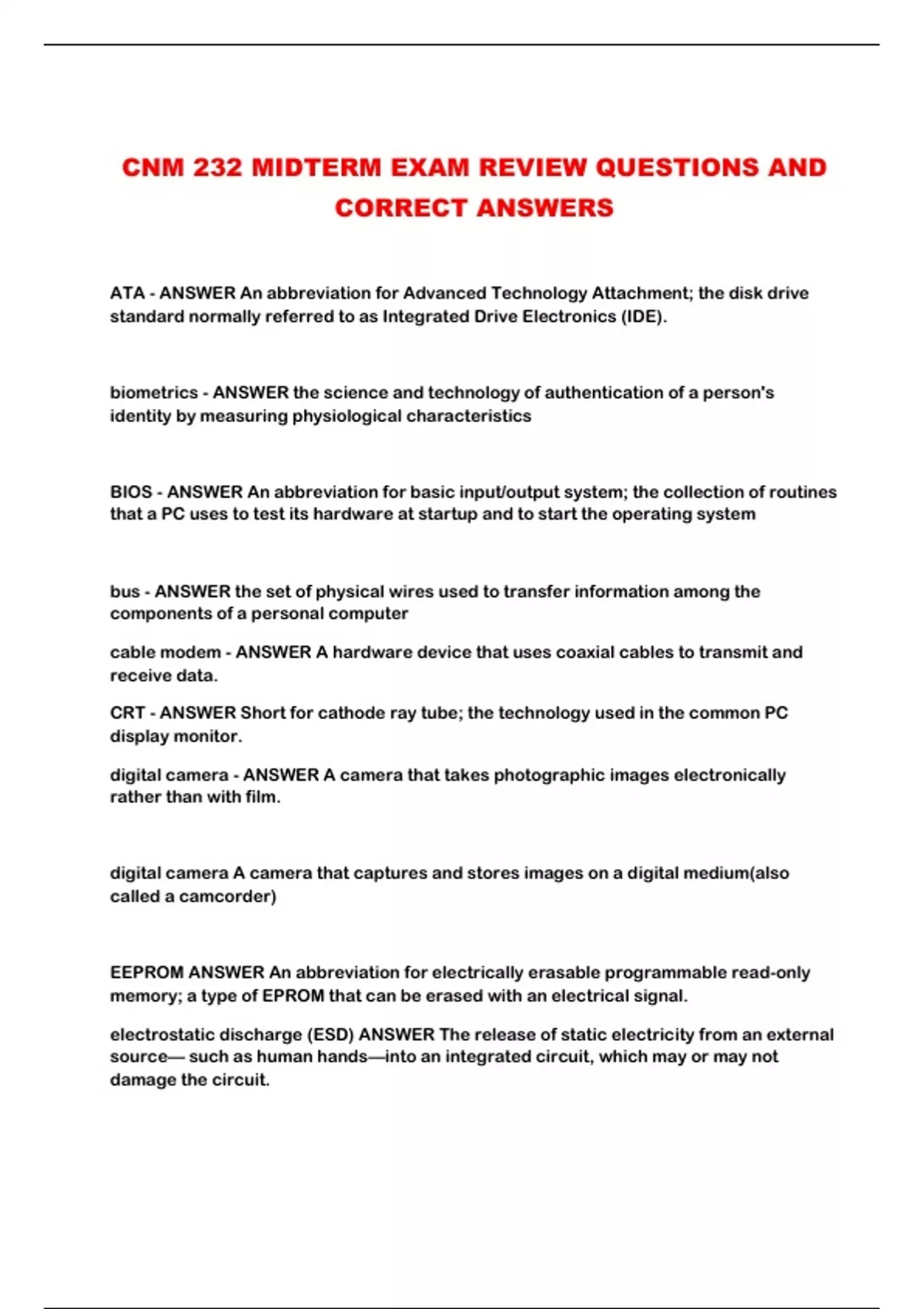 CNM 232 MIDTERM EXAM REVIEW QUESTIONS AND