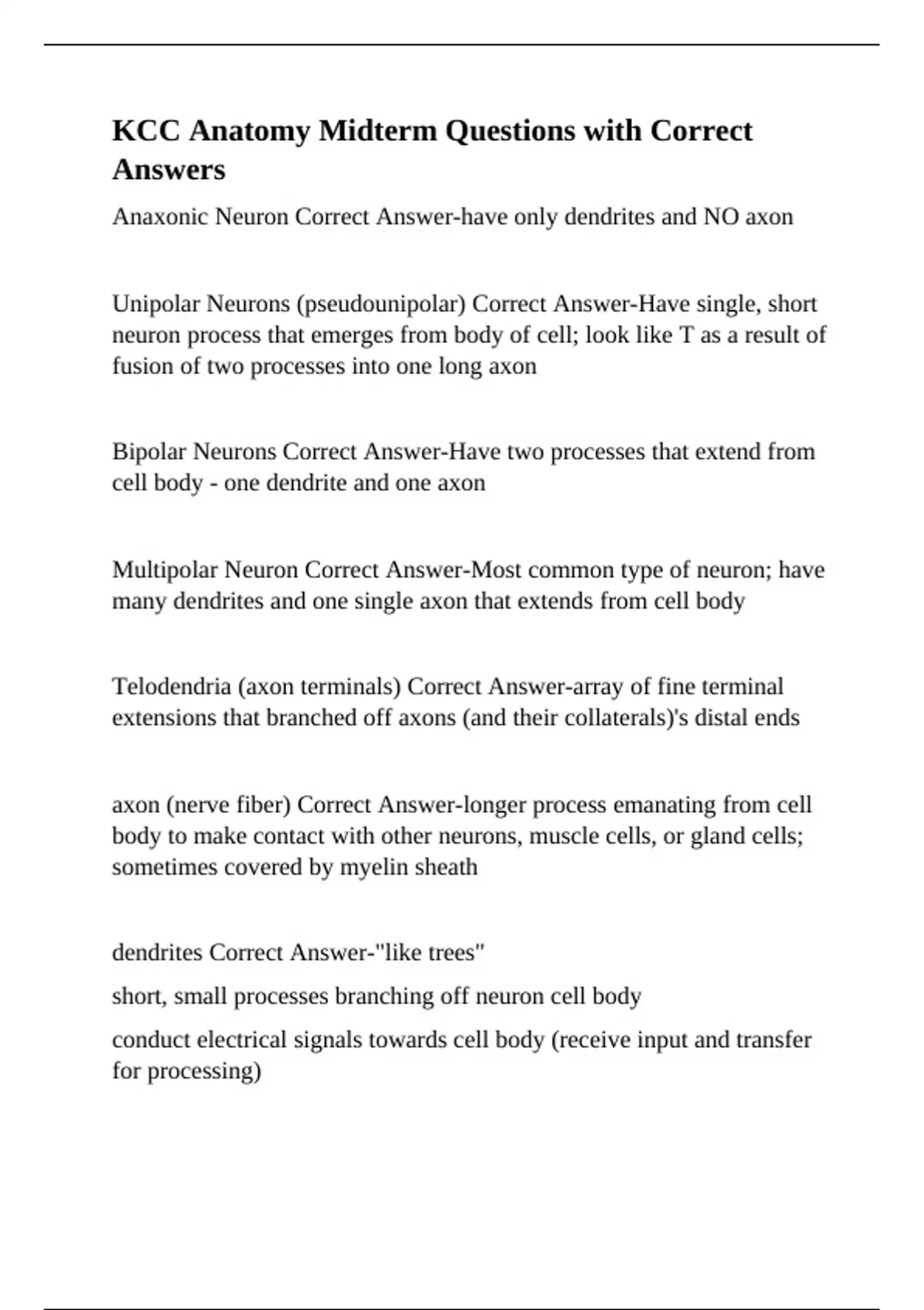 Anaxonic Neuron Correct Answer-have only dendrites and NO axon
